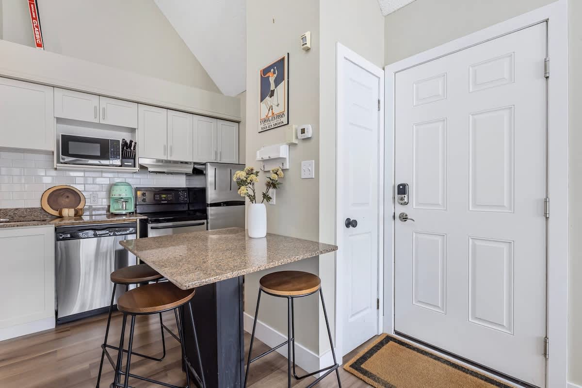 Este hermoso apartamento de dos dormitorios y dos niveles se encuentra en la pintoresca Collingwood/Blue Mountains, Ontario. Disfruta de un espacio familiar con terraza privada, chimenea eléctrica para acurrucarte cada noche e instalaciones que incluyen piscina de temporada, jacuzzi, canchas de tenis y servicio de transporte bajo demanda, todo a solo unos pasos del telesilla y las pistas de esquí. ¡A pocos minutos del spa escandinavo y de la playa de Northwinds! ¡Internet de alta velocidad incluido para relajarte en tu tiempo libre!