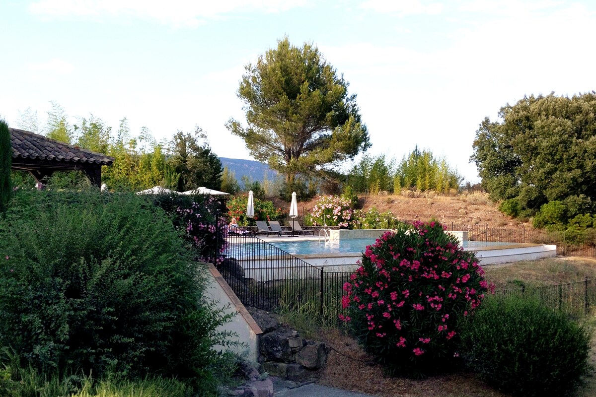Sumérjase en la vista panorámica que se extiende sobre las colinas y el cielo azul. El estudio ofrece una comodidad moderna, y una decoración minimalista con tonos provenzales que se integra con la naturaleza circundante. Un remanso de paz, cerca del pueblo y sus pequeñas tiendas. ☀ En verano, disfrute de la gran piscina, ❄ En invierno, relájese en nuestra sauna privada (con suplemento) Bienvenidos a Correns, el primer pueblo orgánico de Francia, en la Provenza Verde.
