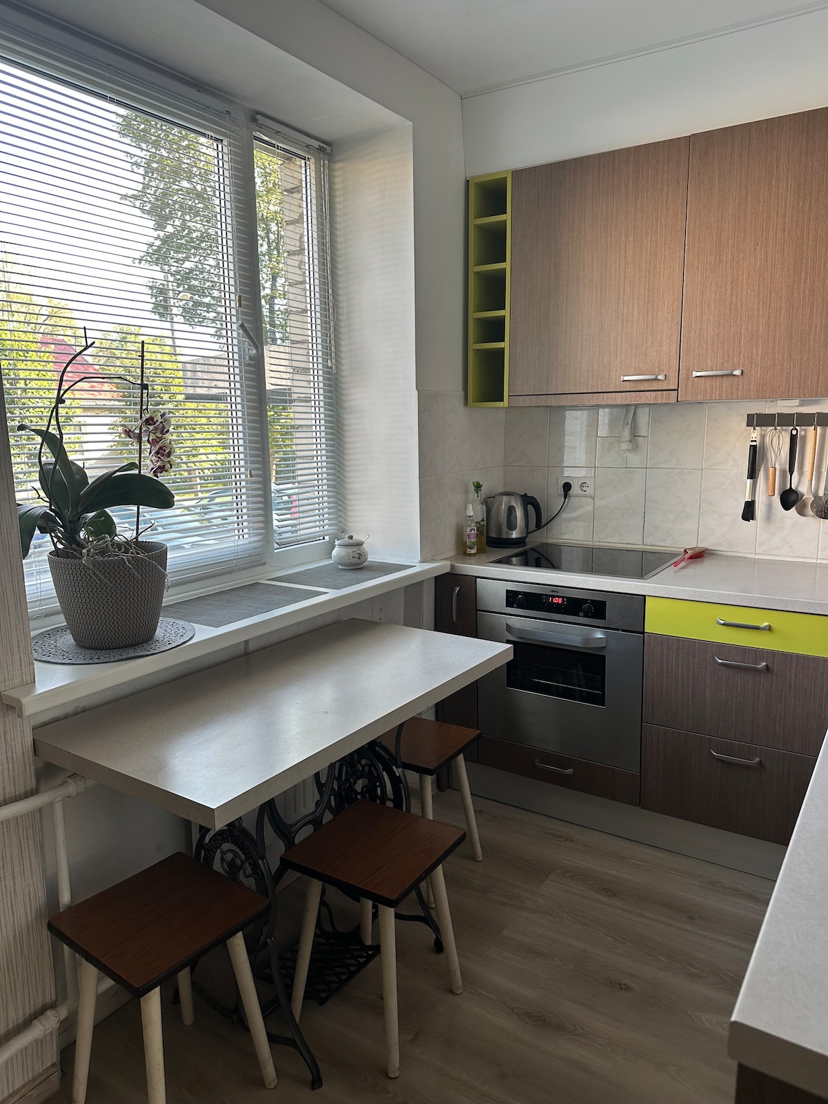 El apartamento es un espacio moderno que es cálido y acogedor. Totalmente reformado a altos estándares con muchas características elegantes. El departamento te ofrece un entorno que se siente como en casa: seguro, luminoso y amigable. El departamento se encuentra en el centro de Rezekne con todos los servicios cercanos. Al estar en el tercer piso, el apartamento no sufre de ruido de la carretera, pero permite excelentes vistas del centro de la ciudad. El teatro, los restaurantes y la universidad están a pocos pasos.