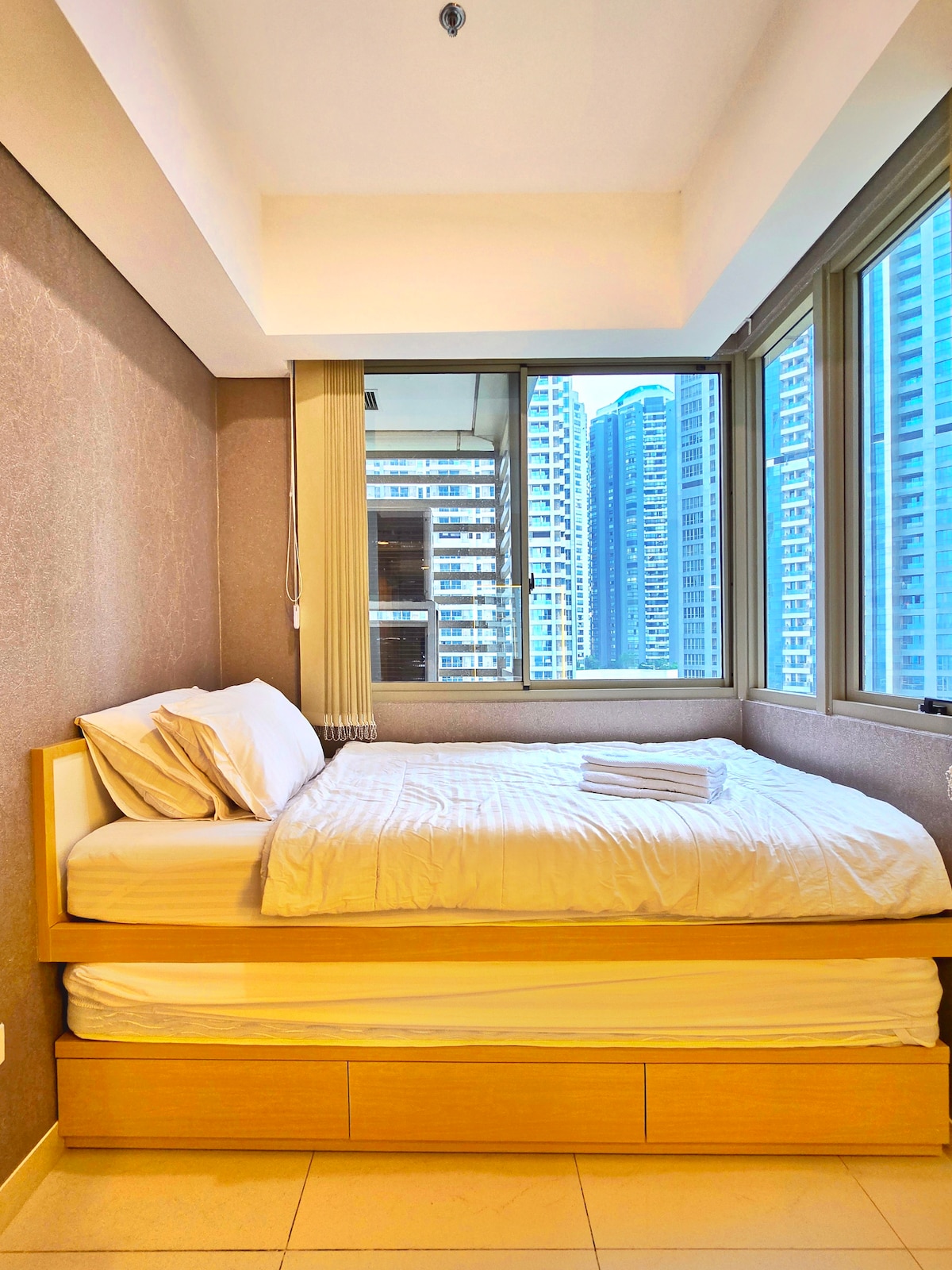 ✨ 2 habitaciones • 1 baño ✨ Aquí todas las unidades de 2 dormitorios vienen con un tamaño de 50 metros cuadrados, ni más grandes, ni más pequeñas. --- Dado que los hoteles no siempre se adaptan a las familias, esta unidad permite que todos se queden juntos con una mejor relación calidad-precio. --- Para hacerlo posible, maximizamos al: 🛋️ Sofá cama en la sala de estar Cama individual de🛏️ 2 capas en la segunda habitación Total de hasta 5 huéspedes, no agregando metros adicionales. 📐 Para mayor claridad, consulta nuestro diseño 2D (en las fotos de la sala de estar). Compartimos esto para que las expectativas estén alineadas desde el principio.