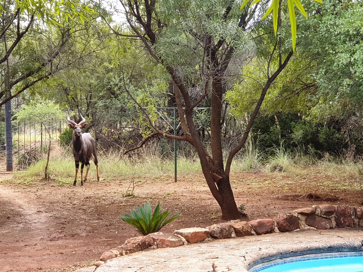 Situado en una granja de 600 ha en el distrito de Swartruggens, a 2 horas de Sandton y a 50 km de Sun City, en una zona libre de Malaria de la provincia noroeste. Alojamiento para 60 huéspedes. Los huéspedes pueden hacer senderismo o pasear en bicicleta por las instalaciones. Se pueden organizar juegos en vehículos abiertos. Una variedad de juegos residen en la granja, como Kudu, Impala, Rooihartbees, Gnu (Blue & Golden Wildbeest), Zebra, White Rhino, Buffalo, Hippo, Nyala, Sable, Blesbuck, Waterbuck, Warthogs, Giraffe, Bushbuck, etc.