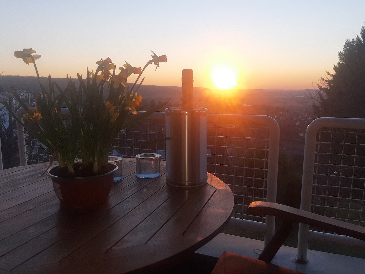 ¡Bienvenido a nuestro acogedor apartamento de vacaciones ubicado en una tranquila zona residencial! La ubicación cercana a la naturaleza en Bliesgau no deja nada que desear, especialmente para excursionistas y ciclistas. St. Ingbert, Saarbrücken y Homburg se encuentran a 20 minutos. El aeropuerto de Saarbrücken está a 7 minutos y el balneario de Saarland a 15 minutos. Las tiendas y la panadería están a poca distancia a pie. Puede aparcar justo delante de la puerta. Los horarios de entrada y salida son flexibles.