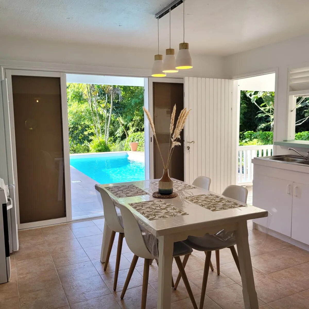 El alojamiento está a las puertas del bosque del parque nacional, con su baño de colon y sus carbets para el picnic, a pocos minutos del parque de Valombreuse ,las playas más hermosas, el aeropuerto y la vida nocturna . Lo apreciará por su comodidad, su frescura y con su agradable vista al mar y a la montaña en un entorno arbolado y agradable . Es adecuado para parejas, viajeros en solitario, viajeros de negocios y familias. Hablamos francés,inglés y alemán.