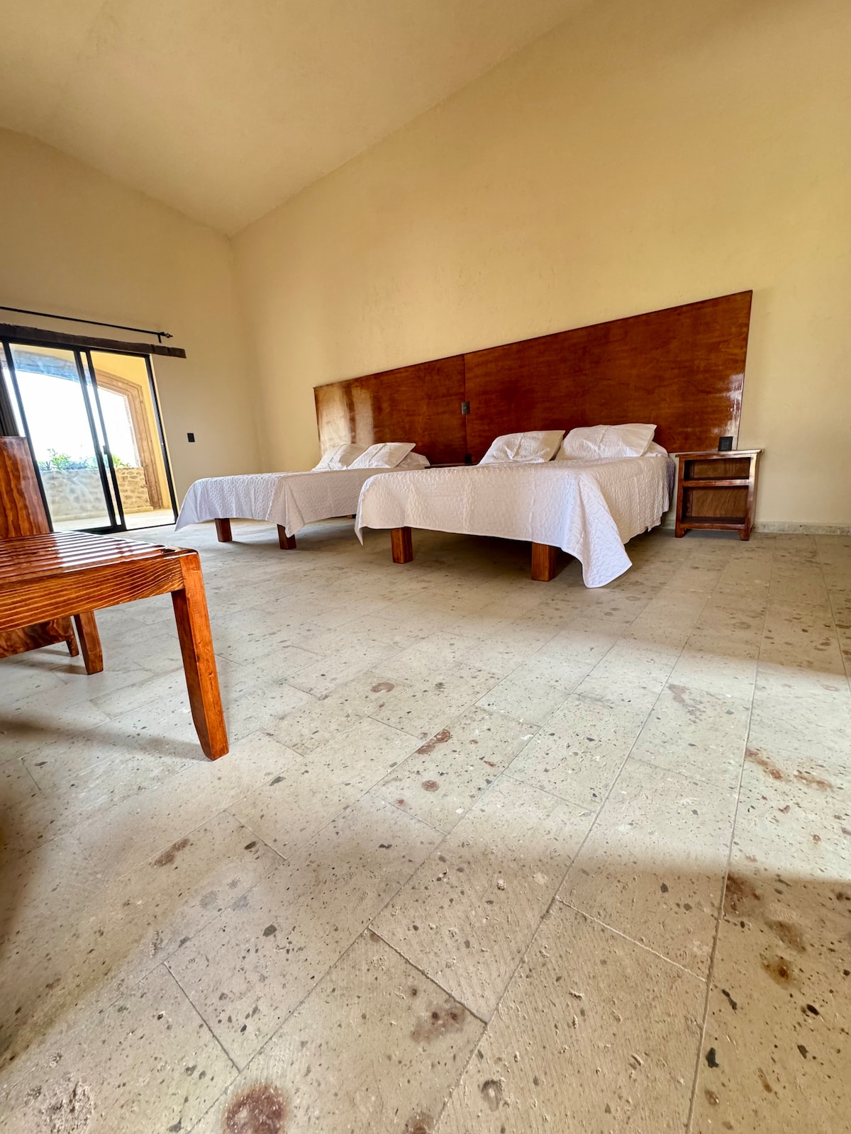 Habitación con dos camas matrimoniales, baño completo, televisión por cable, estacionamiento e Internet gratuito. Forma parte de un pequeño complejo integrado por cuatro habitaciones. Las zonas comunes para huéspedes son estacionamiento, salas en recepción y una bella terraza, en la cual podrás tomar fotos espectaculares . La propiedad tiene excelente vista frontal hacia la Peña de Bernal. En nuestro espacio te sentirás relajado y en armonía con el entorno.