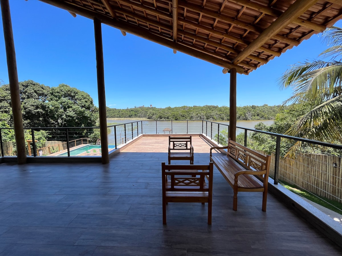 Chalet con piscina privada en Setiba Ville, Guarapari. Escapada romántica para una pareja. 💙 Piscina privada exclusiva 🌿 Naturaleza, vistas al estanque y total privacidad 🏡 Cocina equipada, wifi y aparcamiento 📍 Cerca de las playas y del Parque Paulo César Vinha ✨ Spa climatizado y paquete romántico disponibles (decoración, vino/vino espumoso y spa). Perfecto para sorprender a la persona que amas y vivir momentos inolvidables.