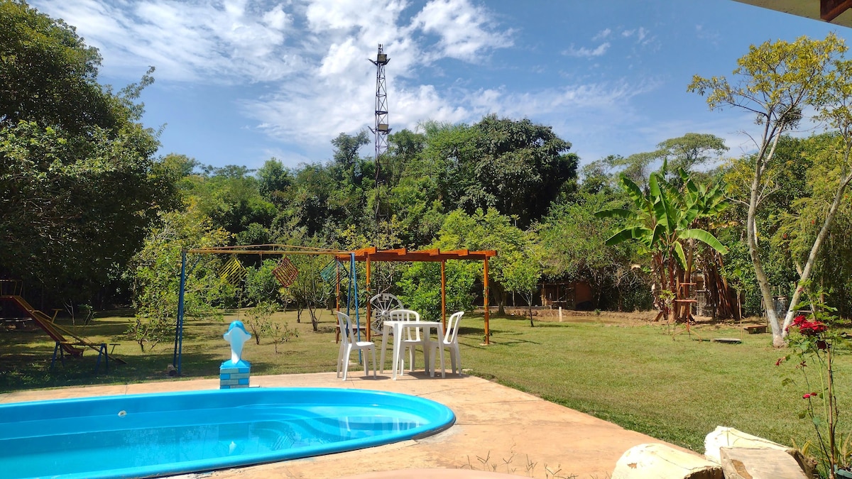 Disfrute de una acogedora casa de campo con piscina, barbacoa y Wi-Fi. Ideal para familias y amigos, nuestro espacio ofrece habitaciones cómodas, cocina equipada y áreas de ocio completas. Situado en una zona tranquila, con fácil acceso a las ciudades cercanas para las compras esenciales. Disfrute de la amplia zona verde, campo de fútbol de césped, capilla, bosque nativo, huerta, huerto orgánico, lagos de pesca y la hospitalidad de los anfitriones Charles y el Sr. Orlando.