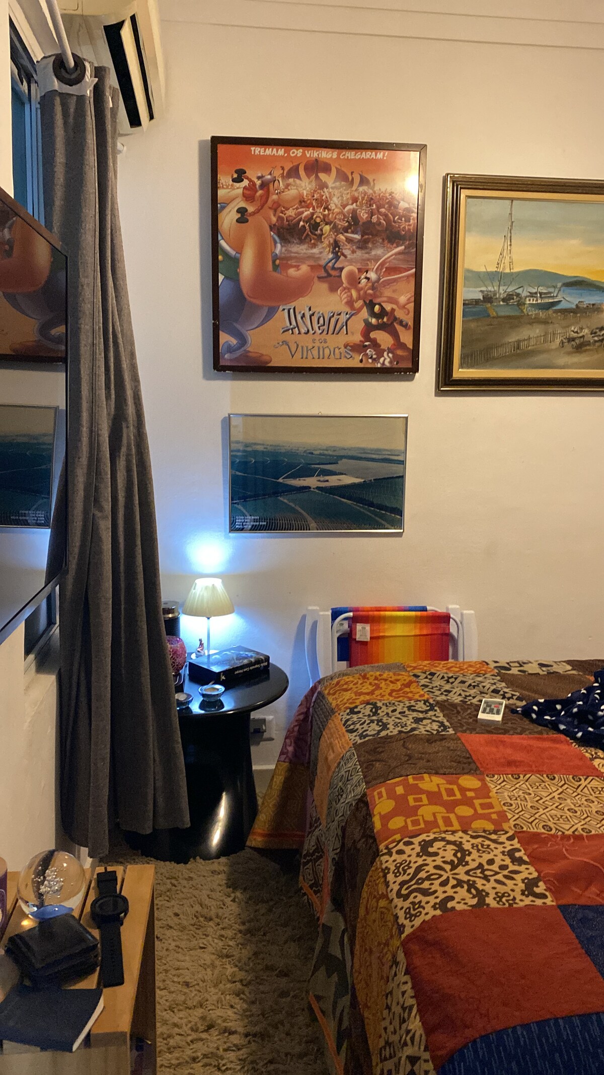 Apto para 1 persona, estilo loft/plano, aire acondicionado en la sala de estar y el dormitorio, TV inteligente en la sala de estar, internet, refrigerador sin escarcha, microondas y todos los utensilios. Está en el tercer piso (sin ascensor), 1 plaza de estacionamiento (puedes alquilar otra en el edificio) y 1 espacio para motocicletas. Ubicación privilegiada: a solo 200 metros de la playa de Enseada (calle del restaurante Rufinos) Muchas tiendas cercanas (supermercado Extra, panadería, farmacias, carnicería, verdulería, mercado, etc.). Cada estructura que necesitamos sin tener que salir en auto