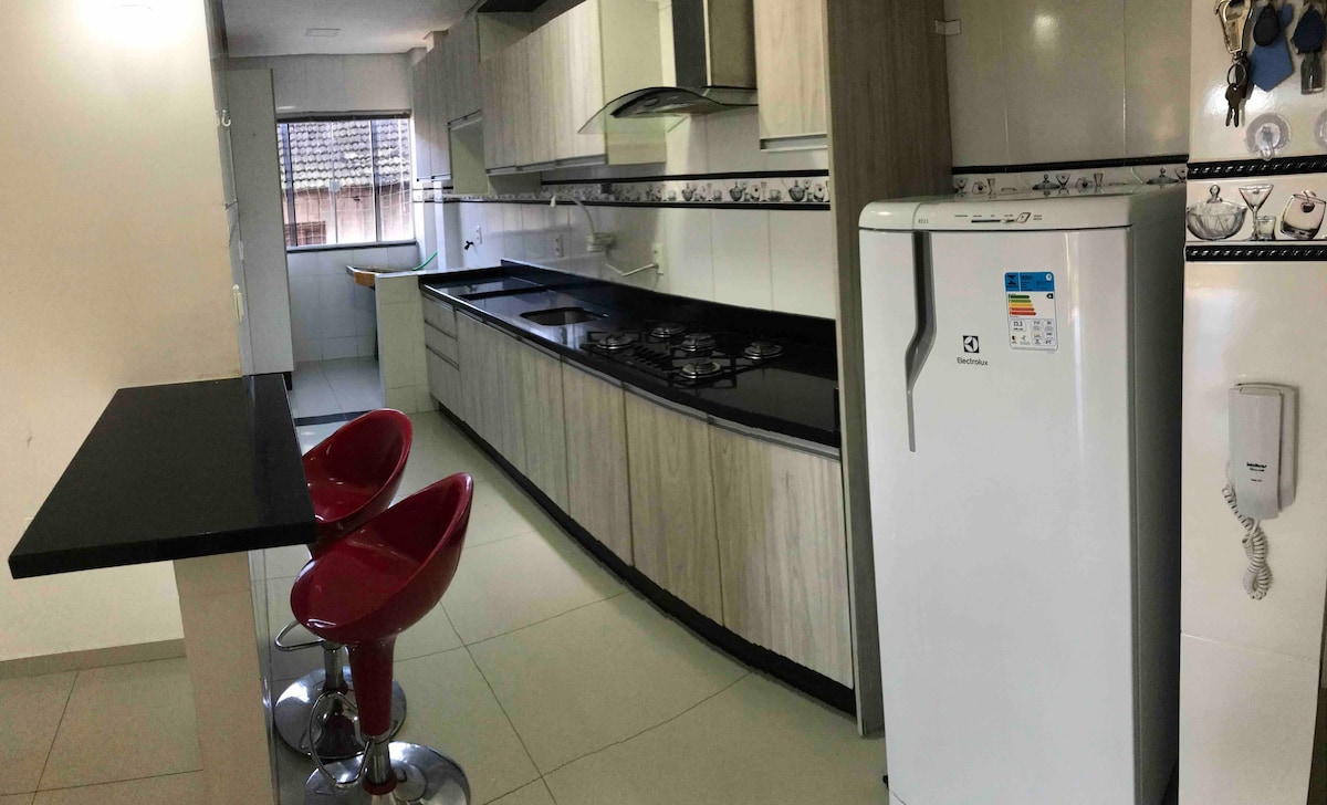 Apartamento de 2 dormitorios, sala de estar, cocina, baño, balcón con parrilla, wifi, cerca del Hospital Regional. Al alquilar, te pedimos que envíes un documento para cada ocupante del espacio, junto con una foto, ya que nuestro condominio lo requiere para su circulación en el entorno común.