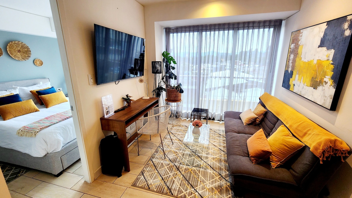 Bienvenido a Blue Skyline, un apartamento moderno y acogedor ubicado en el Edificio QUO, ideal para descansar o trabajar. Disfruta de una agradable vista a la ciudad y una ubicación estratégica cerca de Cuatro Grados Norte, restaurantes, cafés, áreas corporativas y a pocos minutos de Zona 1 y el Aeropuerto La Aurora. Perfecto para estancias prácticas y viajes de trabajo.