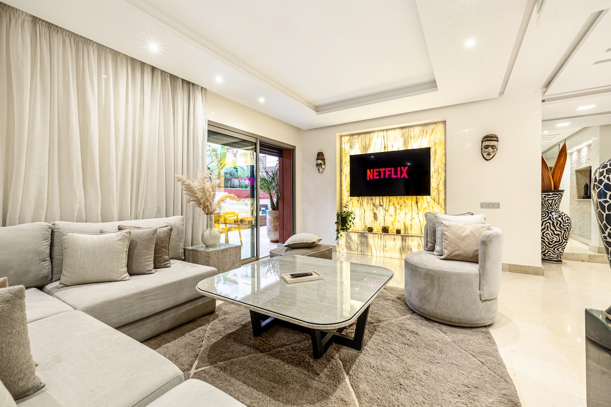 Lujoso 2BR en Gueliz Center Piscina climatizada y jacuzzi