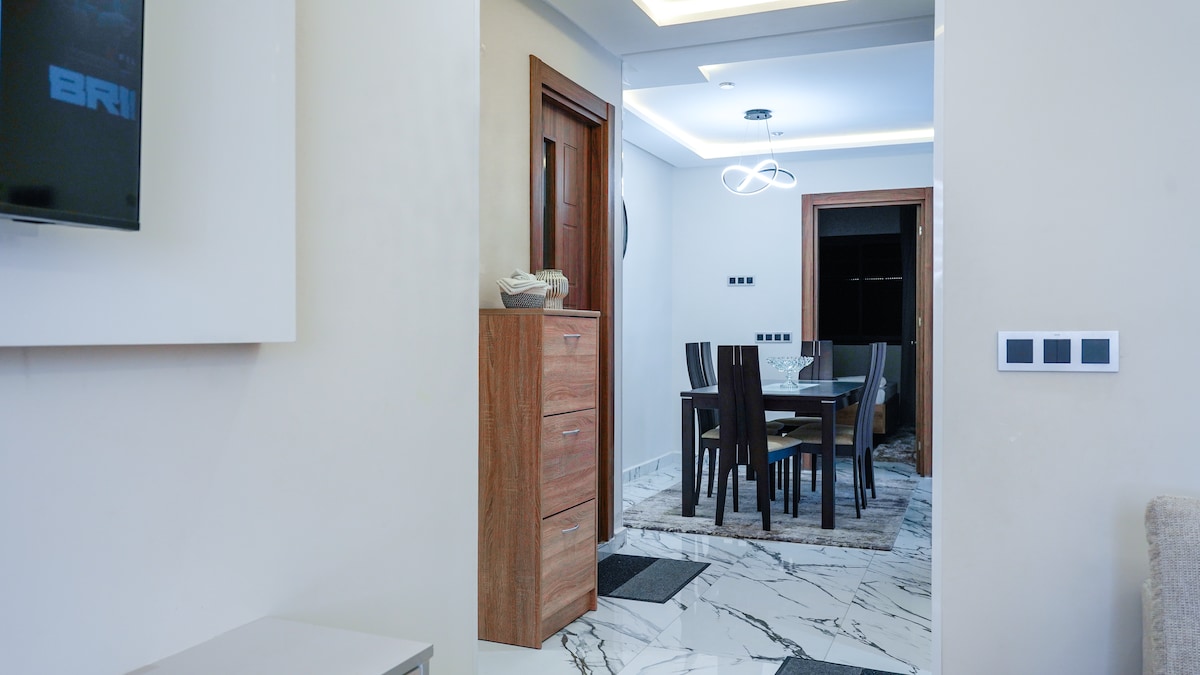 Relájese en pareja, en familia, con amigos o para un viaje de negocios en el ambiente agradable de este magnífico apartamento totalmente equipado con alta tecnología. Decorado con esmero combinando muebles de lujo y piezas únicas que combinan elegancia y prestigio Una experiencia única situada en una residencia entre las residencias de lujo de la ciudad, en una zona muy tranquila de Agadir. Se respetan escrupulosamente todas las normas de higiene.