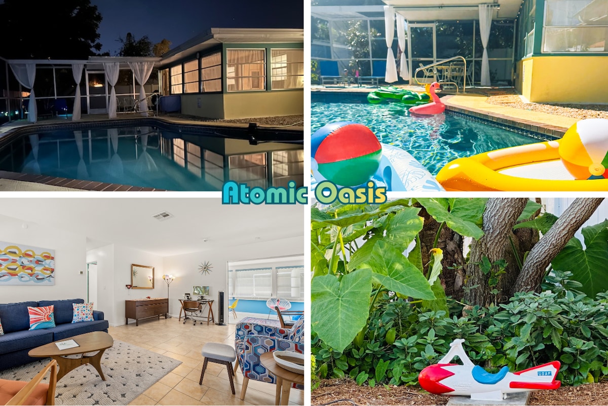 🎉 Stay 7 Nights & Save 10%! More fun, less bucks! 🌴Atomic Oasis 🚀 Take a beat — relax, recharge, & have fun in this peaceful, MCM-inspired private, heated saltwater pool vacation rental just minutes from Siesta Key. Simpler times await (without giving up Wi-Fi)! 📍Prime Sarasota Location • 2 mi to Siesta Key • 1 mi to Gulf Gate dining & shops • 7 mi to Downtown ⭐ Beach & pool gear included ⭐ King + Queen beds ⭐ Quiet neighborhood ⭐ Fast Wi-Fi & workspace ⭐ Family, eco & sensory-friendly