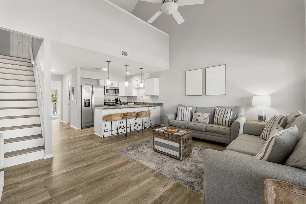 Welcome to Paradise! At this breezy beachfront townhouse, you’re just 30 steps from the sand—and you’ll have a front-row seat to every gorgeous Panama City Beach sunset over the Gulf. Start your mornings with coffee on the covered deck, then walk straight onto your own stretch of coast—no elevators, no crowds, not even a road crossing between you and the waves. After your time on the beach, Pier Park and all the PCB fun are just a short drive away.