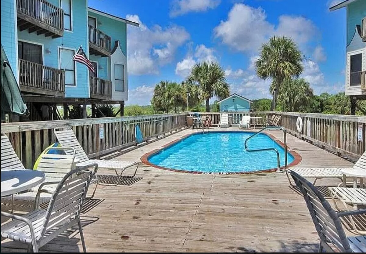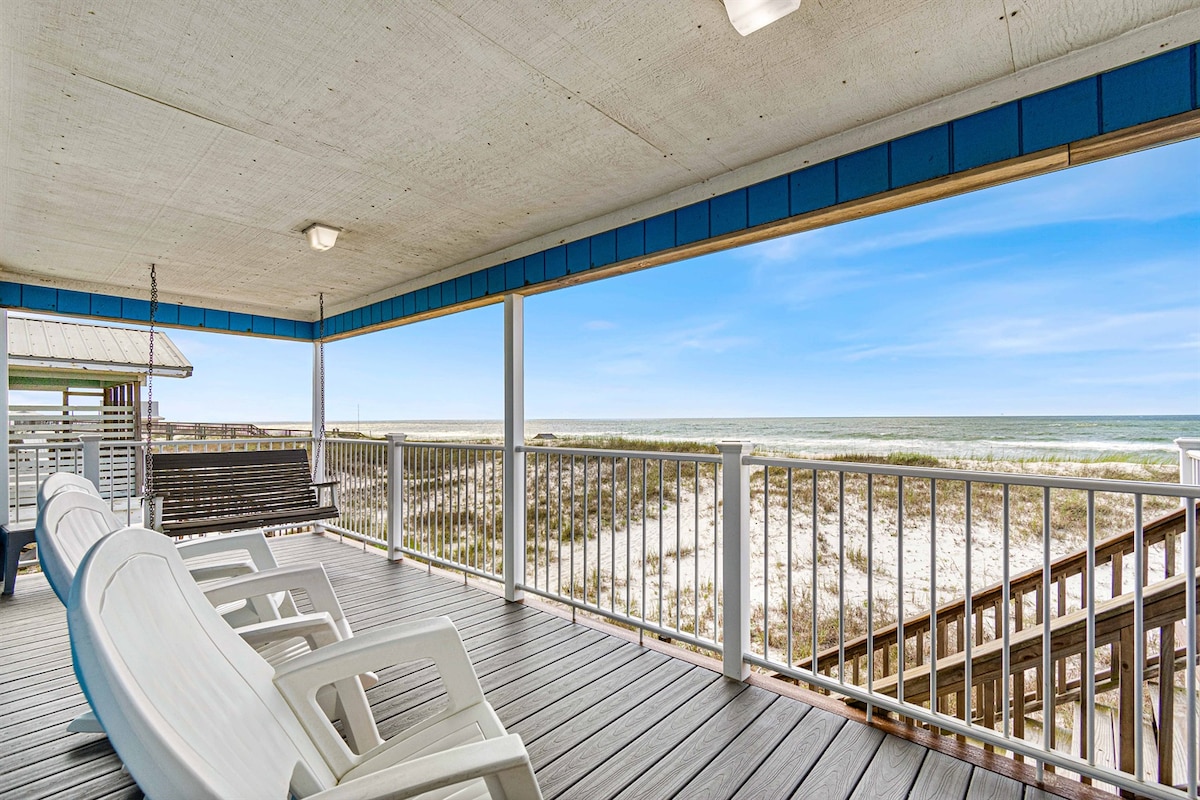 Quinto piso, frente a la PLAYA *¡Totalmente actualizado para tu estancia en 2025! * Frente al golfo: 2 camas tamaño king, cómodo sofá cama, 2 baños completos. * Disfruta de un café en el balcón viendo delfines en el Golfo. * Cocina totalmente equipada con especias, K-Cups, té, chocolate caliente. * Pasos a la playa a través del acceso con llavero. * Piscina interior/exterior, bañera de hidromasaje, sauna y gimnasio. * Estacionamiento cubierto y wifi gratuito. * A 15 minutos a pie de The Hangout. * Televisores inteligentes para streaming. * Un pase de estacionamiento GRATIS, segundo pase de estacionamiento: $45. ¡RESERVA HOY MISMO! ¡Estamos ansiosos por DARTE LA BIENVENIDA!