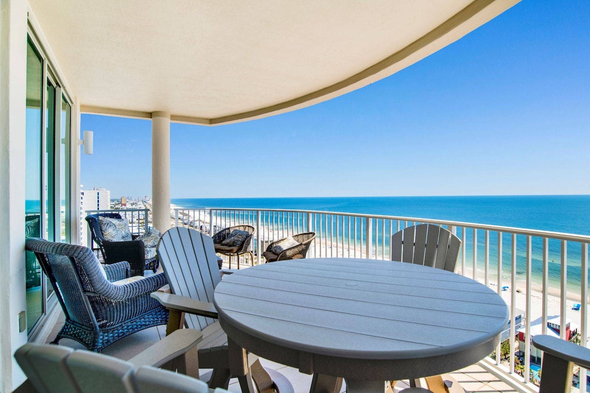 A pocos pasos de la playa Trae tus chanclas y relájate en este condominio playero con vistas al Golfo de México. Beach Haven tiene vistas panorámicas al surf desde tu balcón curvo en el octavo piso + piscina interior/exterior y jacuzzi. La ubicación codiciada se encuentra en el extremo menos concurrido de la playa cerca de State Pier, Gulf State Park, The Hangout, Sea and Suds. Ideal para parejas, solteros, negocios, eventos deportivos y familias. Disfruta de hermosas puestas de sol, los sonidos de las olas, los dedos de los pies en la arena y los amaneceres. ¡Reserva tu tiempo hoy!