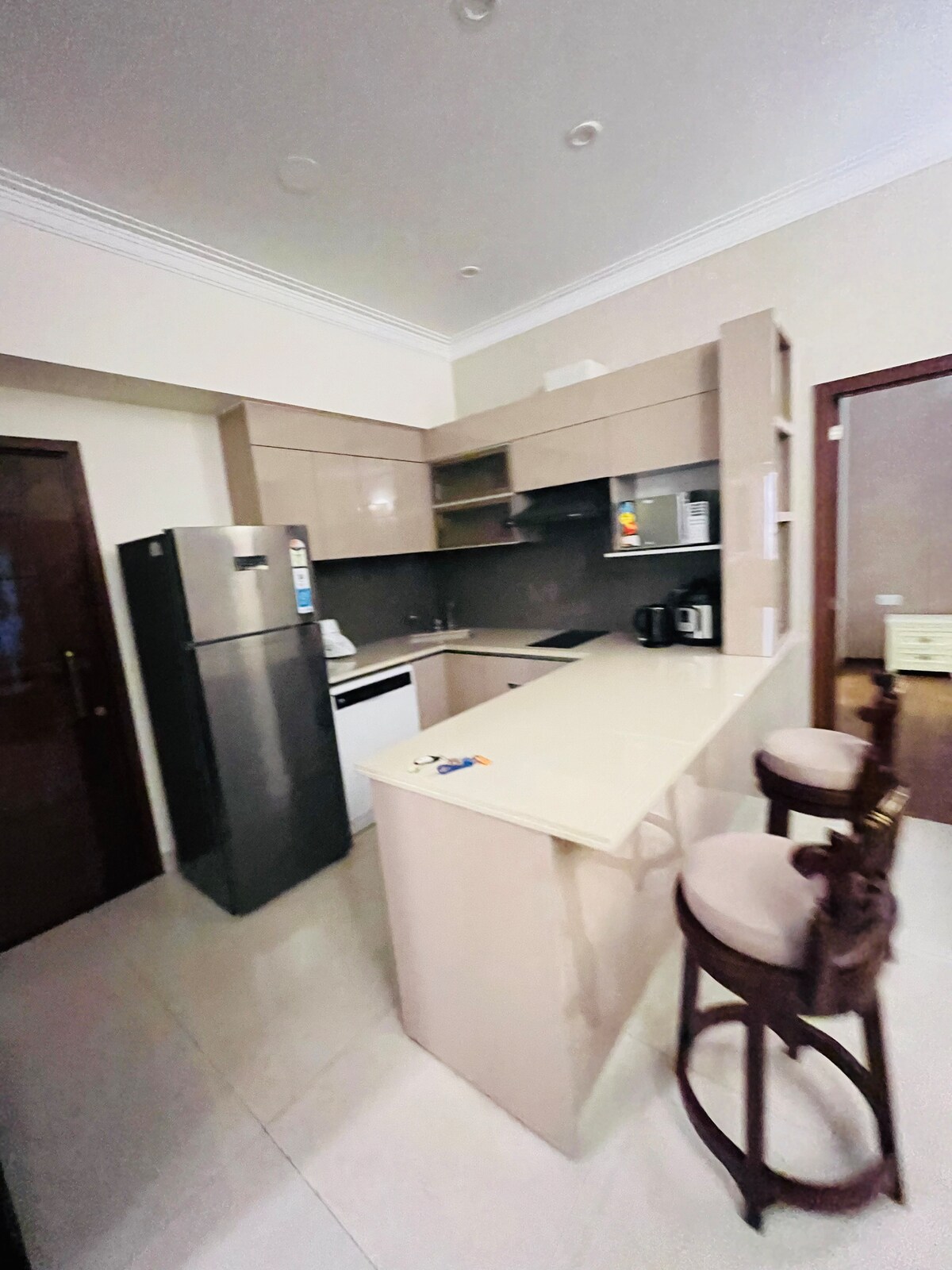 Tu hogar lejos de casa. Perfecto para familias que buscan comodidad, conveniencia y paz. Nuestro apartamento artístico 3BHK, que aparece en una serie de anuncios de marcas de lujo, se encuentra en el piso 18 de una comunidad cerrada y ofrece: • Llegada autónoma: con un teclado • Servicios modernos: de nueva construcción - Con una cocina completa, comedor y 2 balcones • Apto para WFH: Internet de alta velocidad a través de enrutadores de malla • Transporte fácil: accesible en Uber; a 40 minutos del aeropuerto. Solo para familias. No se permiten fiestas. ¿Sesión de fotos? Hablemos