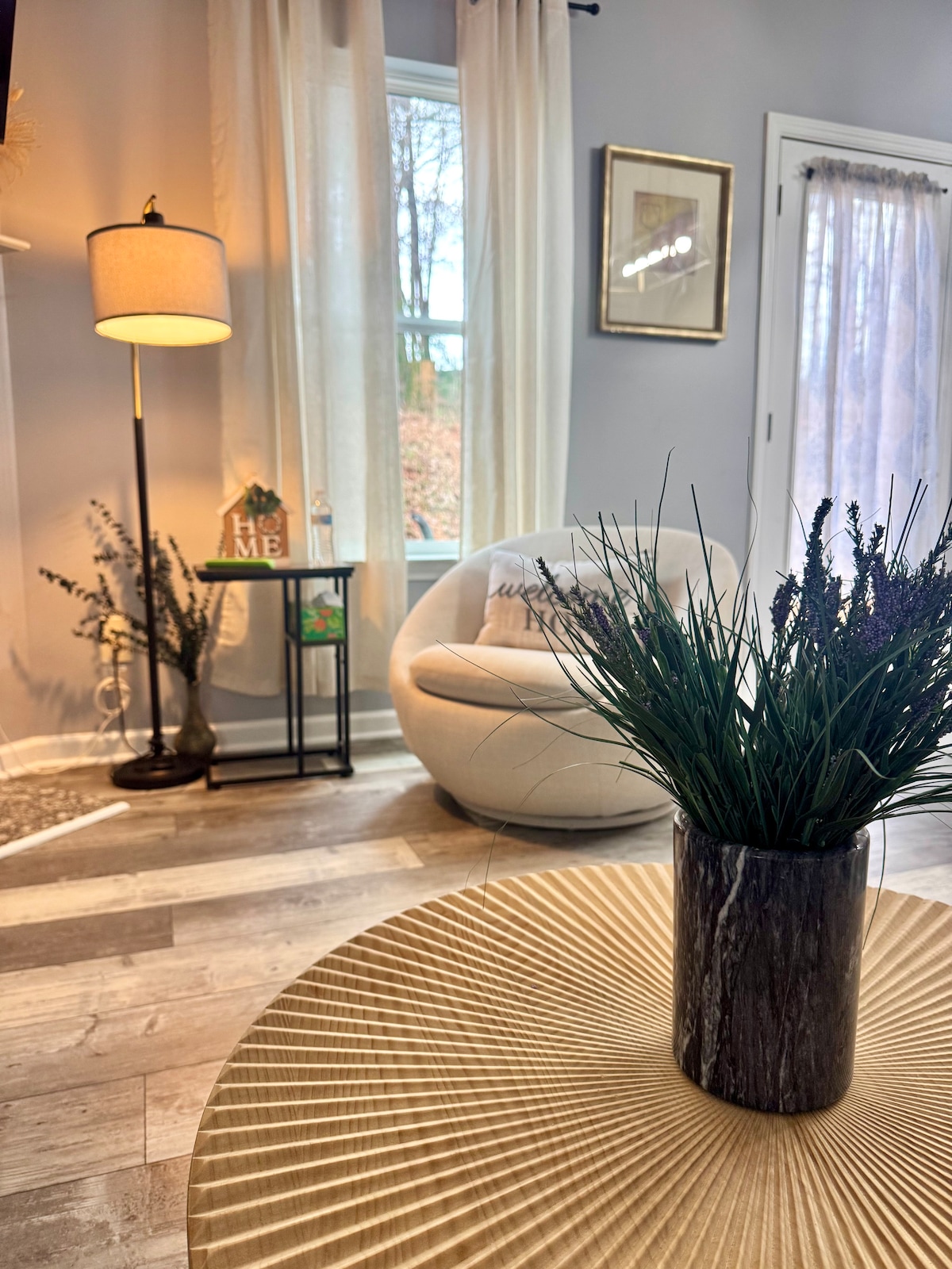 - Espacio privado con su propia entrada al garaje para una estancia pacífica. - Cocina americana totalmente equipada con fregadero, estufa eléctrica, encimeras de leña, gabinetes y todo lo esencial. - Fácil acceso a pie al centro de la ciudad de Suwanee (1 milla) y acceso rápido a la I-85. - Cómoda sala de estar con baño, mininevera y microondas. - Wifi rápido, televisor inteligente y una acogedora chimenea eléctrica. - Reserva ahora para un retiro conveniente y privado en Suwanee.