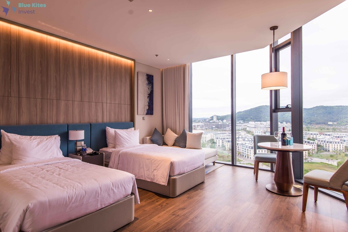 Luxury Apartment at A La Carte Ha Long – Sea & Sunset View (VIP Corner Apartment) Enjoy a modern space with breathtaking views of the sea and majestic limestone mountains, plus stunning sunsets right from your apartment. Work comfortably with a dedicated workspace and high-speed WiFi. 🍽 Room rate excludes breakfast & amenities like pool, jacuzzi, spa, bar... 🚗 Prime location: 1-minute walk to the beach, 5-minute drive to the night market. ✨ Experience the perfect vacation!
