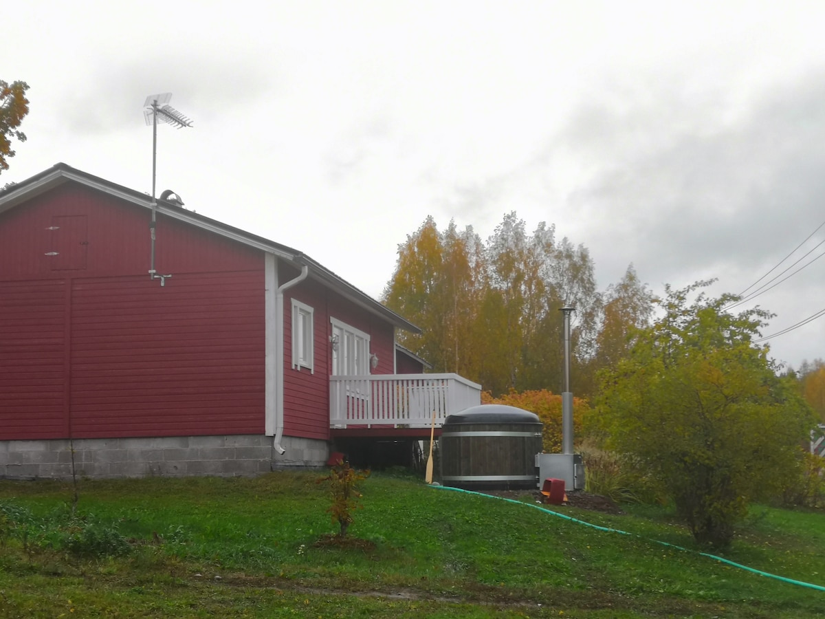 Esta acogedora cabaña te da la bienvenida para pasar escapadas relajantes y estancias de trabajo a distancia más largas en medio de la hermosa y tranquila naturaleza finlandesa. La cabaña tiene dos espaciosas cabinas, una cocina bien equipada y una buena sauna. El encantador estanque para nadar está a solo unos pasos y escaleras de la cabaña. Hay buen wifi, un gran césped soleado y no hay vecinos a la vista, por lo que puedes nadar en tu traje de cumpleaños si quieres :) La tienda de comestibles más cercana está a 12 minutos en coche.