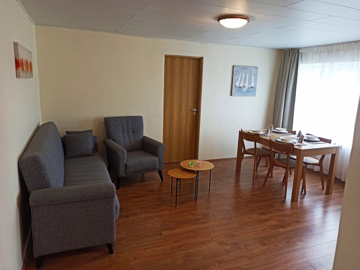 Sé sencillo en este lugar tranquilo y céntrico. El departamento no está diseñado como un lugar para fiestas. La cocina con todo lo necesario (horno,estufa, nevera, hervidor de agua, cafetera), baño (ducha y lavadora), sala de estar con dos sofás ( 2 y 1 asientos; también hay una cuna al aire libre) se puede utilizar. El departamento tiene un balcón con una acogedora esquina para sentarse.