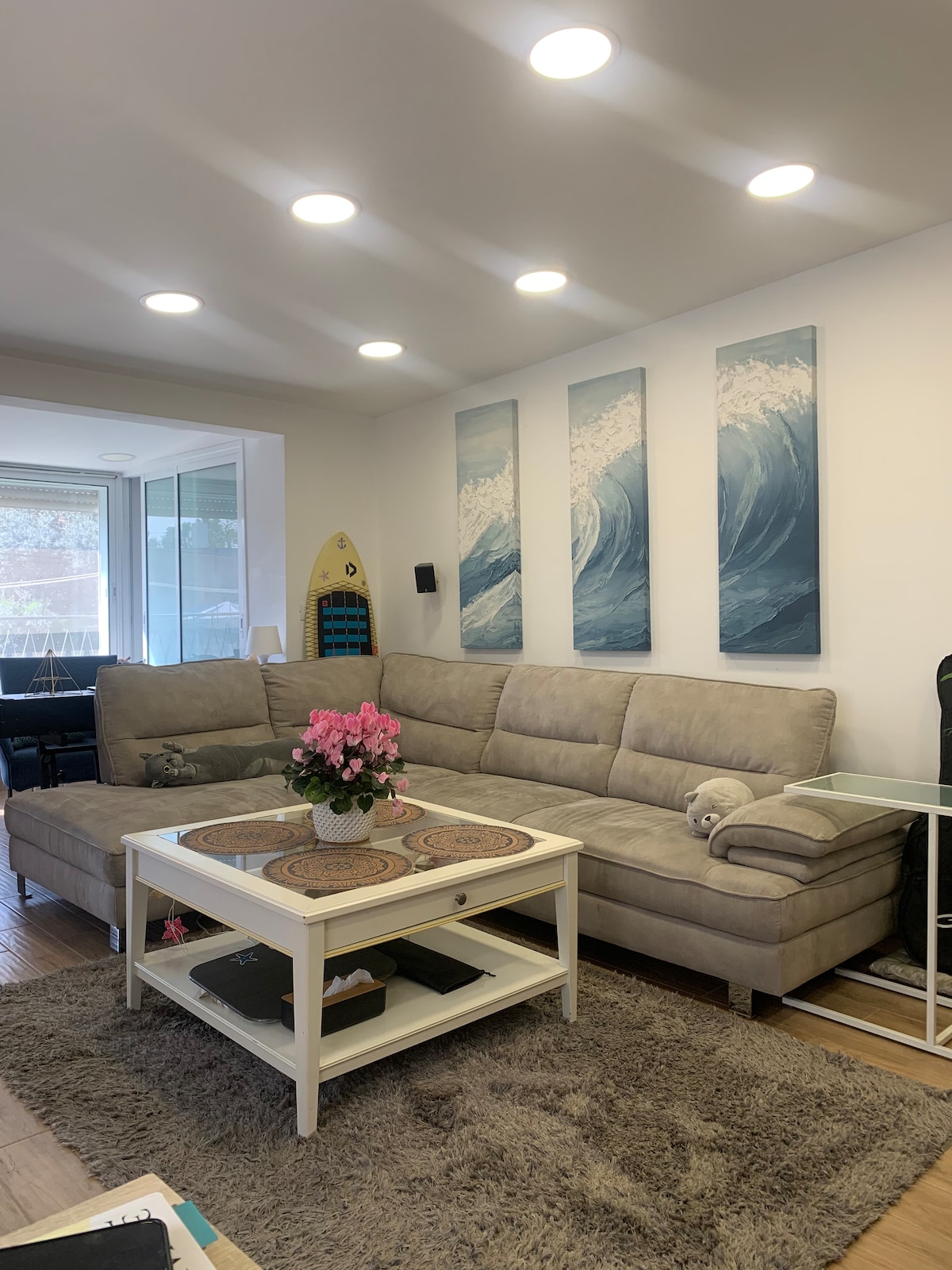 Un hermoso apartamento frente a la playa situado en Givat Olga, en el centro de Israel. El edificio es nuevo (1 año) y tiene un conserje 24/7. Se encuentra frente a las hermosas playas de arena de Hadera (primera línea al mar, justo al otro lado de la calle para llegar). El departamento está en el piso 16 y tiene un lujoso balcón de 20 metros cuadrados con las mejores vistas de la historia.