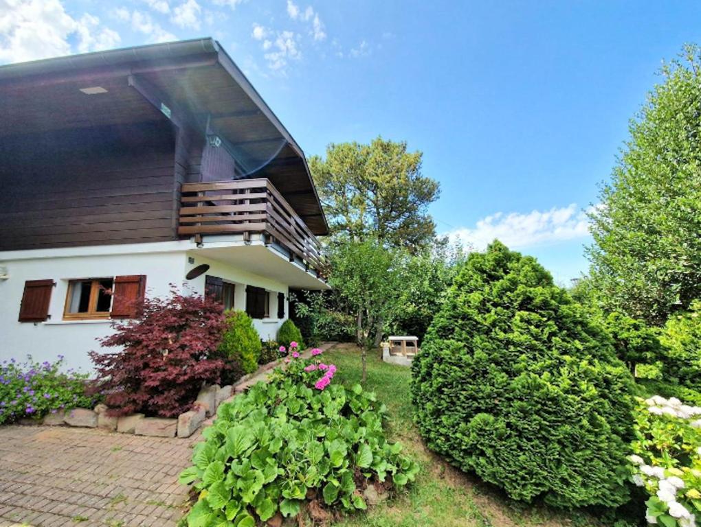 Muy bonita casa situada en una gran parcela de 20ares en el borde del bosque en las alturas del pueblo con impresionantes vistas y tranquilidad. Este alojamiento tiene una gran sala de estar con una cocina abierta totalmente equipada, 3 dormitorios ( 2 camas individuales, una cama grande de 2 plazas y una cama king size grande). Presencia de 2 cunas. La casa da a una gran terraza con una parte cubierta para la zona de comedor. También tiene un garaje con una estación de carga para automóvil.