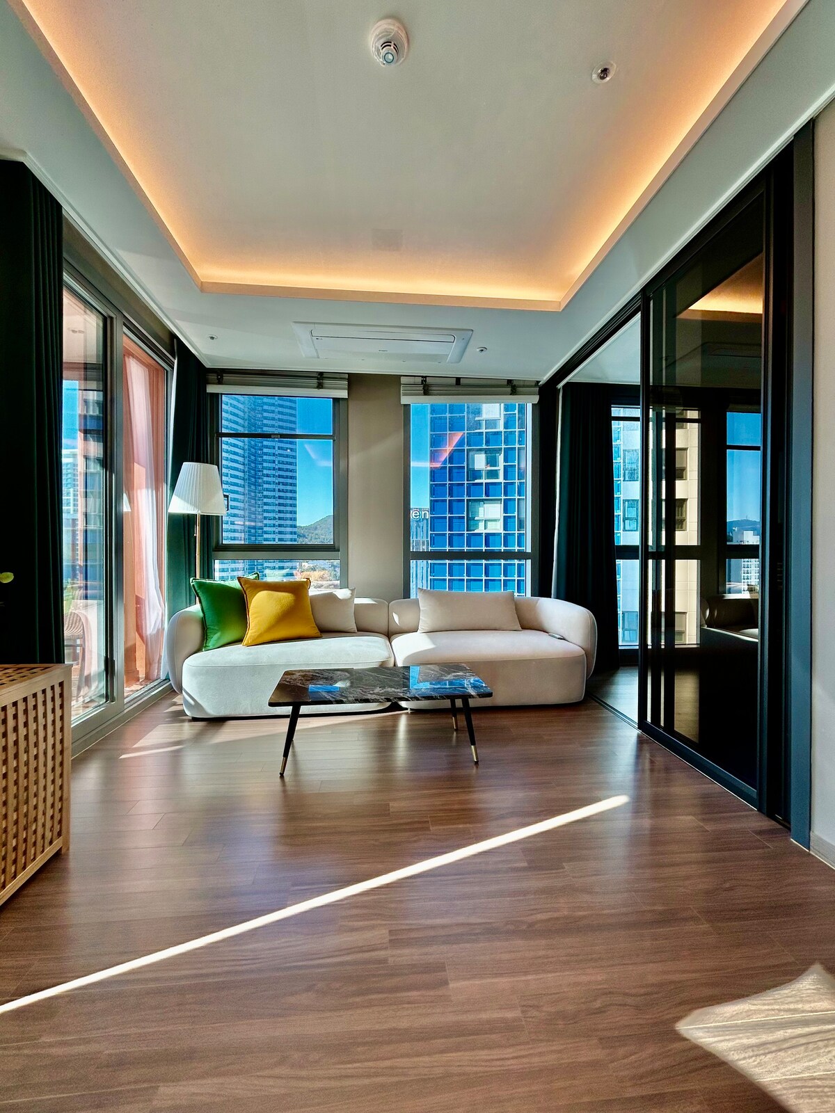 Calificación promedio: 4.91 de 5; 455 evaluaciones1 minuto a la playa de Haeundae/Más de 400 reseñas/Estudio de 19 pyeong/Parque acuático LCT/Mes de estadía/Viajes de negocios/Netflix