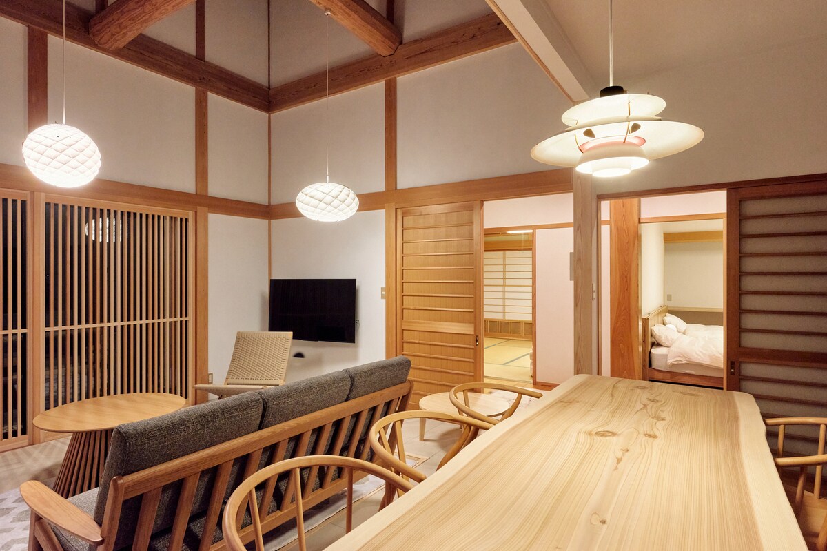 Tochigi Kirenkawa, una de las tres mejores posadas de aguas termales de Japón para una piel hermosa (3 aguas termales principales para una piel hermosa: Saga, Shimane, Tochigi) “Arquitectura audaz y delicada de los carpinteros que construyen santuarios” + Un lugar para hospedarte con "muebles e iluminación nórdicos de Dinamarca" [Siesta en el hotel Bihada-no-Yu] Una villa en el bosque donde puedes disfrutar del sonido de los pájaros. Aguas termales privadas + spa (aceite aromático/shiatsu: se requiere reservar con anticipación) ※ Este alojamiento es una villa, y el concepto es relajarse con las aguas termales.No hay actividades destacadas cerca. (Nikko y Nasu se pueden llegar en 40-50 minutos en auto y se pueden usar como punto de relevo). El manantial termal tiene un alto efecto hidratante con una calidad de manantial embellecedora de la piel de cloruro de sodio, y tu piel estará hidratada. [Layout] 2 dormitorios principales + LDK para un total de 3 habitaciones, máximo 8 personas (recomendado 5 personas) ★ Iluminación: Louis Poulsen PH5, Pantera, Casa de la radio, Patella, Patella Oval ★ Muebles: Carl Hansen Silla Y, silla cubana ★ Puerta: Puerta Maira ★ Techo: techo estirado con columnas. ★ Baño termal: hecho de piedra Towada y granito ★ Aire acondicionado potente de 200 V: calentaremos la habitación antes de tu llegada. ★ Bebida de bienvenida: 1 botella de agua de 2 litros