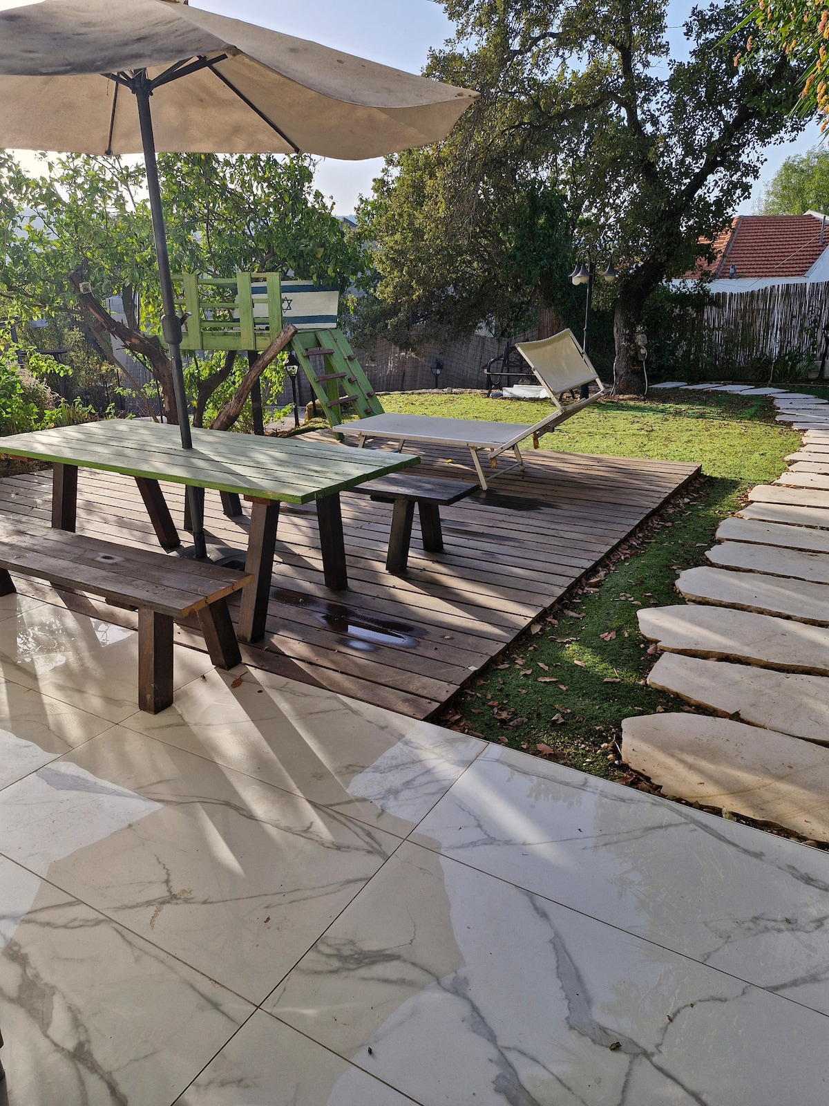 This quiet and cozy guesthouse has a lovely patio surrounded by trees. There is private parking and a private entrance. There is air conditioning and ceiling fans. In Harduf there is a shop, an organic vegetable market, a cafe, a coffee truck, a petting zoo, a playground, many walking trails. In the summer there is a pool. The guesthouse includes a living room, a fully equipped kitchen, a bathroom with a shower, towels, shampoo, conditioner and soap, and a bedroom with a double bed.
