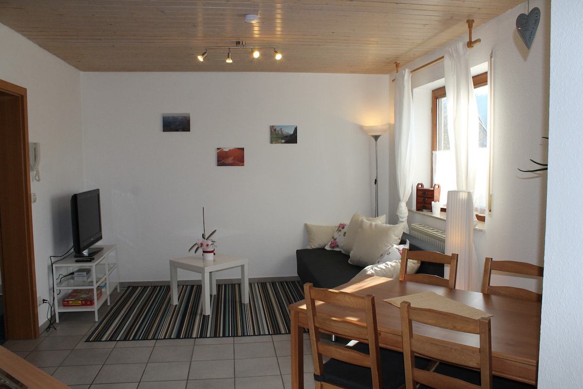 Apartment 2 – Großzügige 2-Raum Ferienwohnung 43qm für 5 Personen (2-4 Erwachsene & Kleinkind) Geschmackvoller Essecke bis 4 Personen 1 Schlafzimmer mit einem kuscheligen und großem Doppelbett 1,80m x 2,00m Neue gemütliche Schlafcouch für 2 Personen Schöner Balkon mit Sitzmöbel Sichtfachwerk und Steinmauer bringen eine einzigartige Athmosphere in die Wohnung Willkommen bei den Ferienwohnungen der Traumferienhäuser Schwarzwald: Über einen kleinen Flur gelangen Sie in den offenen Wohn-,