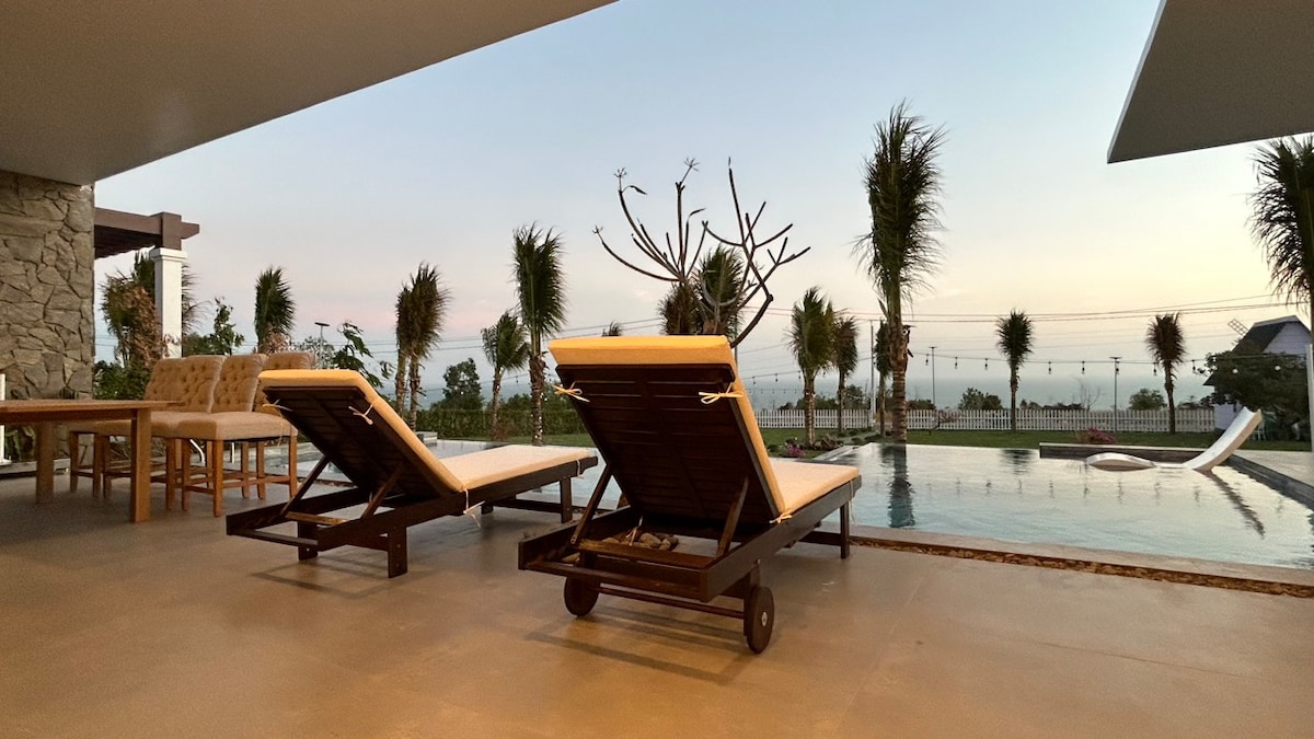- Capacidad 9 grandes, 4 bebés menores de 12 años. - Área de 800 m2, diseño de habitaciones de lujo y muebles de clase alta. - Preciosa piscina frente a la playa, de ensueño. - Villa de diseño de 3 dormitorios, con vistas al mar, todas las habitaciones son hermosas y modernas, instalaciones completas. - 3 baños llenos de toallas y artículos personales, - Cocina con utensilios de cocina completos: microondas, horno, arrocera, cocina súper rápida, nevera, platos. - Patio grande y espacioso, vista al mar, puede salir de fiesta cómodamente.