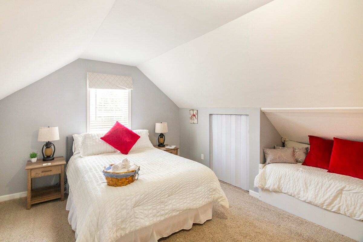 ¡Obtén lo mejor de ambos mundos! Conduce 4 millas hasta el centro de Chattanooga para disfrutar de algunos de los mejores restaurantes, arte y música del sur, y luego retírate a nuestro Rocky Ledge Bunkroom en el lado de Lookout Mountain. Sal por la puerta principal y entra en los senderos de montaña para una caminata de 25 minutos hasta Glenn Falls, y explora la majestuosidad durante todo el año de Lookout Mountain. A 5 minutos en auto del centro comunitario de St. Elmo, el Incline Railway y un vibrante distrito comercial. A 10 minutos de Rock City y Ruby Falls.