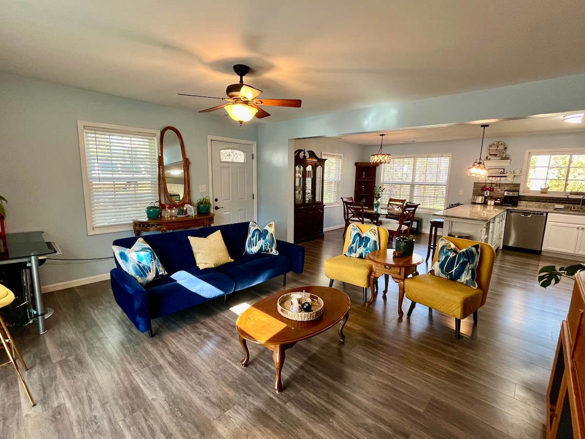 Bienvenido a tu escapada a McDonough, una casa bellamente renovada a solo unos pasos de la histórica plaza McDonough con tiendas, restaurantes y eventos locales. Relájate y disfruta de la televisión de 65 pulgadas de la sala de estar, cada dormitorio tiene su propia televisión de 55 pulgadas. La cocina totalmente equipada, el acogedor porche con mosquitero y el wifi rápido hacen de este un alojamiento perfecto para familias, amigos y viajeros de negocios. Cerca de Southern Belle Farm, Atlanta Motor Speedway y el aeropuerto de ATL, te encantará el cómodo acceso a las atracciones de Atlanta.