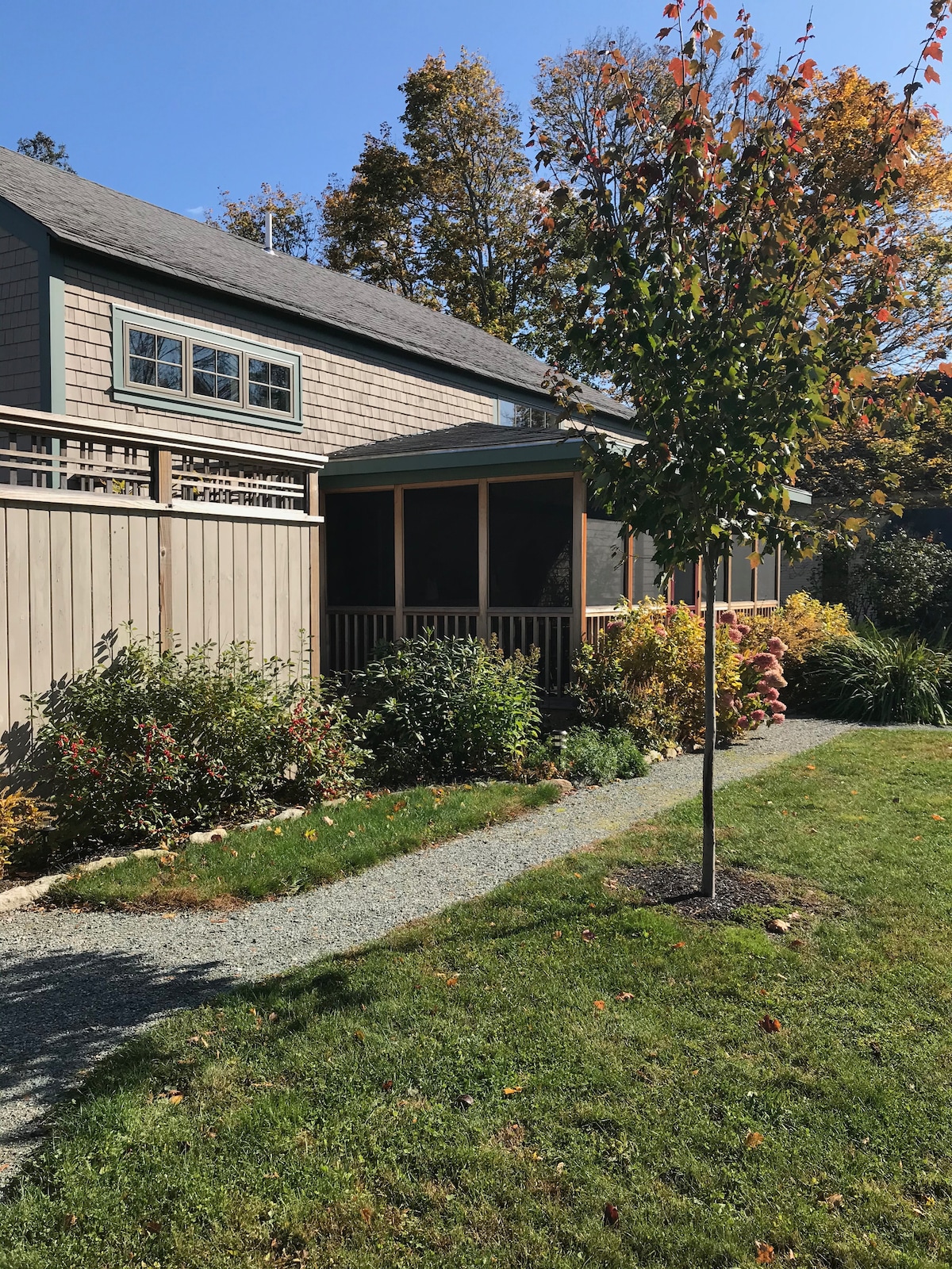 There isn’t anything shabby about this shabby chic 1 bedroom, 1 bathroom cottage! There is a full kitchen along with a microwave and coffee maker. All linens and towels are included. A large wall mounted TV and Sirius XM in the cottage. Also a back deck for morning coffee and relaxation! Located in the heart of Blue Hill village. Walking distance to Art gallery’s, coffee shops,Blue Hill Library, Blue Hill book store, fine dining and the town park! Also, Kneisel Hall is just a short ride where you can hear beautiful Chamber music! Take a day hike or a quick hike through Parker point trail to the local grocery store, go kayaking on Blue Hill bay or take a drive to Acadia National Park for the day. This is the perfect spot to experience Down East Maine, the way life should be! Nearby towns include Stonington, Deer Isle,Ellsworth,Bar Harbor, Acadia National Park,Castine, Camden, Brooklin Belfast, as well as many other quintessential coastal towns! There’s so much to do while you’re here, make sure you check out the local goings on before yoSee you soon! Becky and Bill