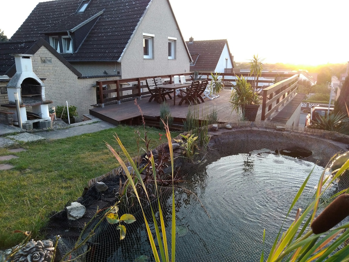 ¡Queridos huéspedes! ¡Nos gusta darte la bienvenida a nuestro alojamiento USA & Bike! A solo 10 minutos a pie de la estación de tranvía a Hannover & Feria. Vivirás en tu propia casita con entrada independiente. Disfruta del encanto de la habitación de 2,10 m de altura. Te alojas en la bonita habitación de 25 m² y tienes tu propio baño con ducha. Para entretenerte, puedes utilizar una mesa de futbolín, dardos, TV y wifi. En la habitación también hay nevera, microondas, calentador de agua y cafetera de uso gratuito. ¡Disfruta de nuestra hermosa terraza con unas vistas estupendas!