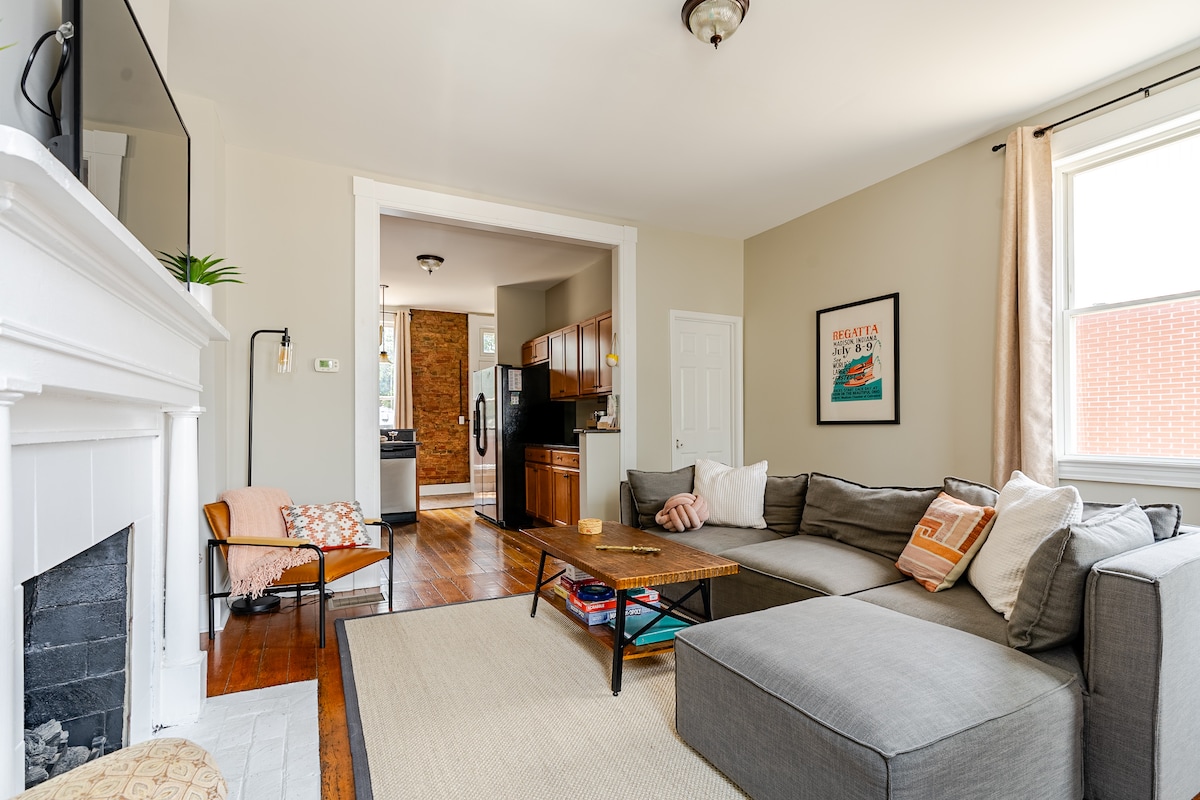 ¡Ven a ver por qué la ciudad nos otorgó el "Premio Estelar", el mejor lugar para alojarse en Madison! El edificio histórico fue originalmente uno de los principales establos de librea de la ciudad hacia 1886. Se apreciarán los muebles nuevos muy cómodos, una amplia zona de reunión, 2 baños grandes, lavandería y una cocina blanca amueblada. Sin embargo, el encanto histórico permanece. Pronto verás por qué todo el edificio ha ganado múltiples premios. Ven a ver por qué US Today otorgó a Madison el premio a la "Mejor ciudad pequeña del Medio Oeste".