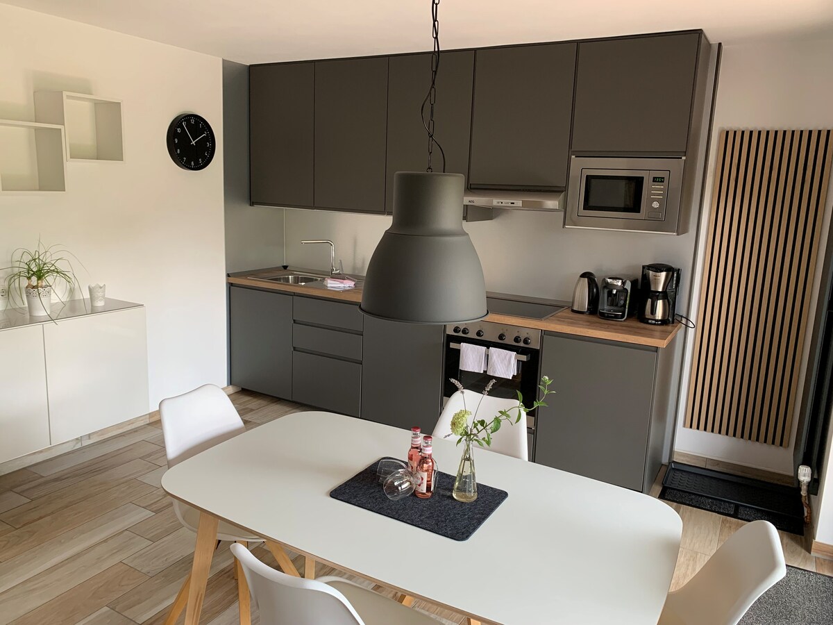 Acogedor, luminoso y confortable en un total de 45 metros cuadrados. La calefacción por suelo radiante, así como un equipamiento de alta calidad con mucha atención a los detalles, no dejan ningún deseo por cumplir y te invitan a relajarte y descansar. ¡Bienvenidos!