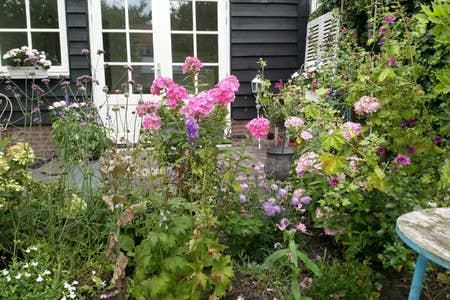 Please note that the address is Achter Raadhoven 45A, a green garden door, and not Achter Raadhoven 45, where our neighbor lives. De Boomgaard (The Orchard) is in the walled garden of an 18th-century house on the legendary Vecht River, where Dutch country life was born. The b&b is a complete cottage of great charm and comfort. Guests have their own entrance, with free parking a few steps from the door. They have their own entirely private bathroom and kitchen.