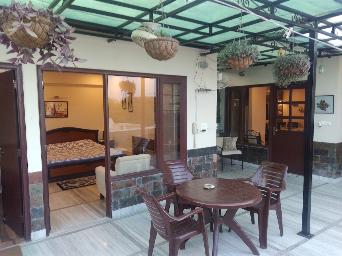 ¿Quieres relacionarte con familiares, amigos o compañeros de trabajo en plena naturaleza en Nueva Delhi? ¿Quieres experimentar la mezcla ideal de encanto y hospitalidad del viejo mundo con todas las comodidades modernas? ¿Deseas dar un paseo por los extensos jardines bajo los árboles frutales o esperar a ver pavos reales? Si la respuesta es SÍ, entonces este apartamento independiente de 3 dormitorios de la villa Shiv Niwas, con balcones privados y terraza en la azotea, cerraduras inteligentes, wifi de alta velocidad en toda la propiedad, aparcamiento gratuito y cuidadosas cocineras, ¡TE ESTÁ ESPERANDO!