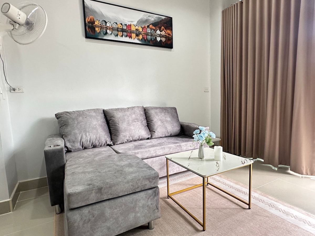 Bienvenido a nuestro espacioso apartamento en el centro de Hat Yai. Disfruta de una gran sala de estar perfecta para relajarse, un dormitorio cómodo y un baño moderno. Ubicado a solo 5 minutos del centro de la ciudad, centros comerciales y las principales atracciones, nuestro apartamento ofrece comodidad y comodidad. Se incluyen wifi de alta velocidad y TV de pantalla plana para tu entretenimiento. ¡Reserva ahora y disfruta de una estancia perfecta en Hat Yai!