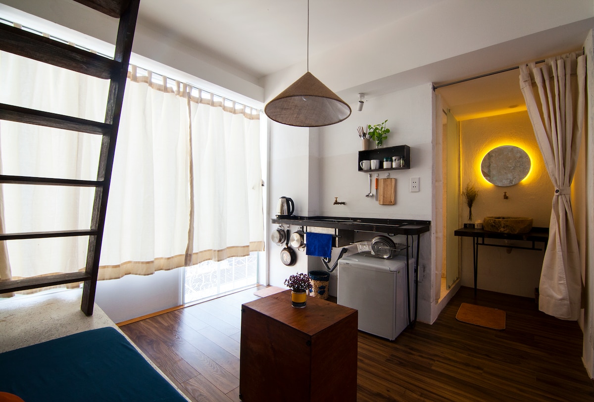 Apartamento tipo estudio con un diseño único en un encantador callejón en Saigon Center. El estudio está ubicado en el segundo piso de una casa adosada, cuyo primer piso es la encantadora cafetería BeanThere. Solo se tarda unos minutos en llegar a las atracciones y a la vida nocturna. Además, también hay una cocina para cocinar comidas básicas. Un desayuno (01 comida y 01 bebida) / huésped / noche en la cafetería Beanthere. Ofrecemos limpieza gratuita para reservaciones de más de 4 noches. Si es necesario, puedes notificarlo con 1 día de anticipación.