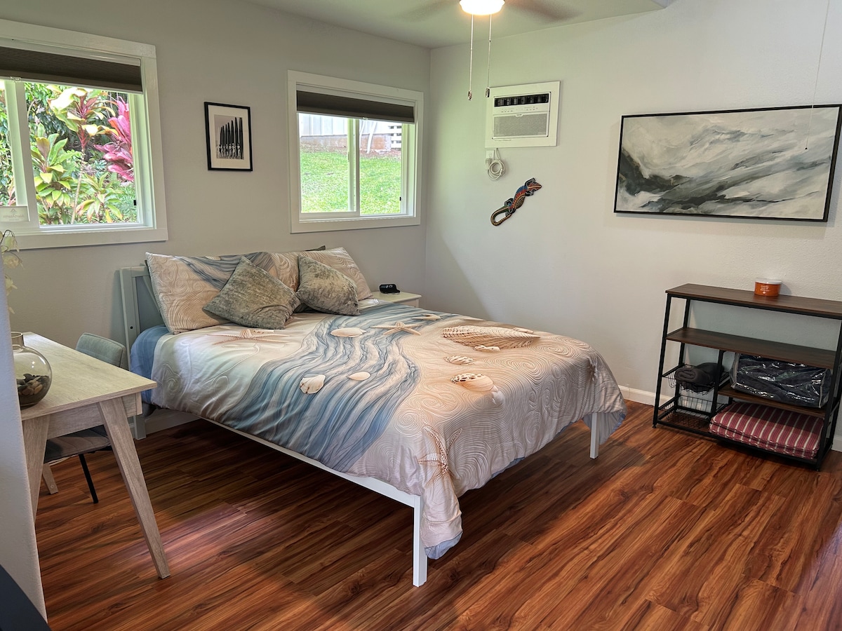 Privado/separado del estudio de invitados de la casa principal en el encantador pueblo de Hakalau. RECIÉN RENOVADO para más metros cuadrados y aire acondicionado. Fácil acceso y estacionamiento, cómoda cama tamaño queen, baño privado, ducha espaciosa, TV inteligente de alta definición, cable, WiFi de alta velocidad y kitchenette. Exuberante paisajismo y jardín privado de bistró. A pocos pasos de la casa hay una espectacular caminata por la selva tropical hasta la costa. Surf, tirolesa, cascadas, senderismo, ciclismo, paseos a caballo y mucho más a poca distancia en coche de la casa.