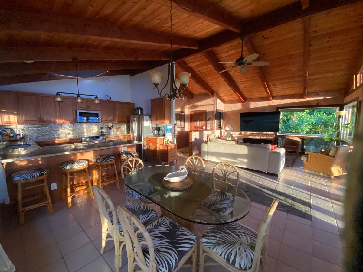 Buenas noticias, he actualizado mi wifi al mejor de nuestra zona. Sé que ahora las necesidades de nuestros huéspedes han cambiado y que un buen wifi es imprescindible. También hemos añadido una terraza cubierta con barbacoa para tu comodidad. Volcano Hidden Cottage está en una ubicación céntrica que facilita la exploración del lado este de la isla grande. Muy privada, llena de romanticismo, cocina, chimenea y muchas ventanas con vistas a la selva tropical.