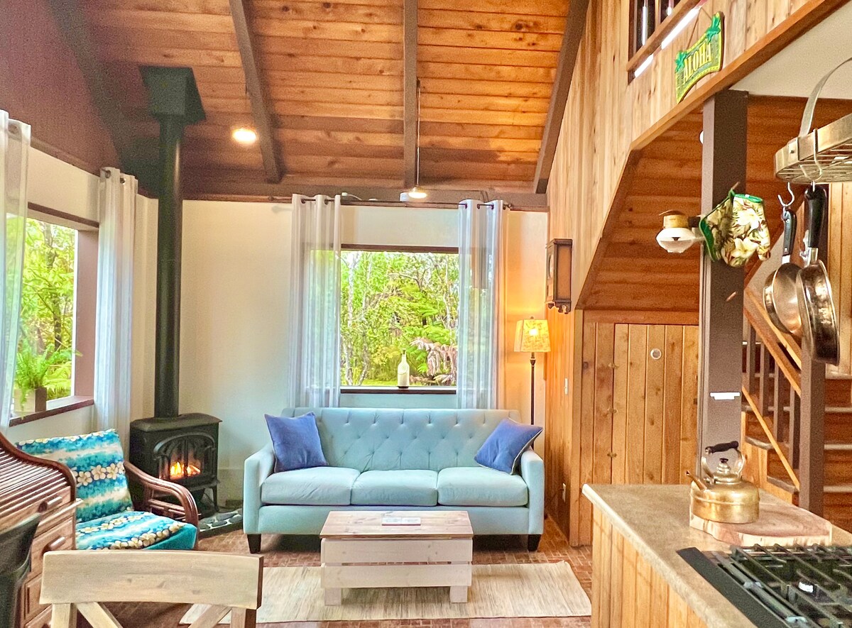 «Hale Iki» es un tesoro escondido ubicado en Volcano, Hawái. Está hecha a mano enteramente de cedro. La casa está a solo 5 minutos del Parque Nacional de los Volcanes. Te encantará la comodidad, la privacidad, los techos altos, el loft, la cocina completa, la estufa de leña y la bañera para dos personas. Esta casa fue construida por mi abuelo hace 30 años y ha conservado el encanto y la calidez que él creó en esta acogedora cabaña.