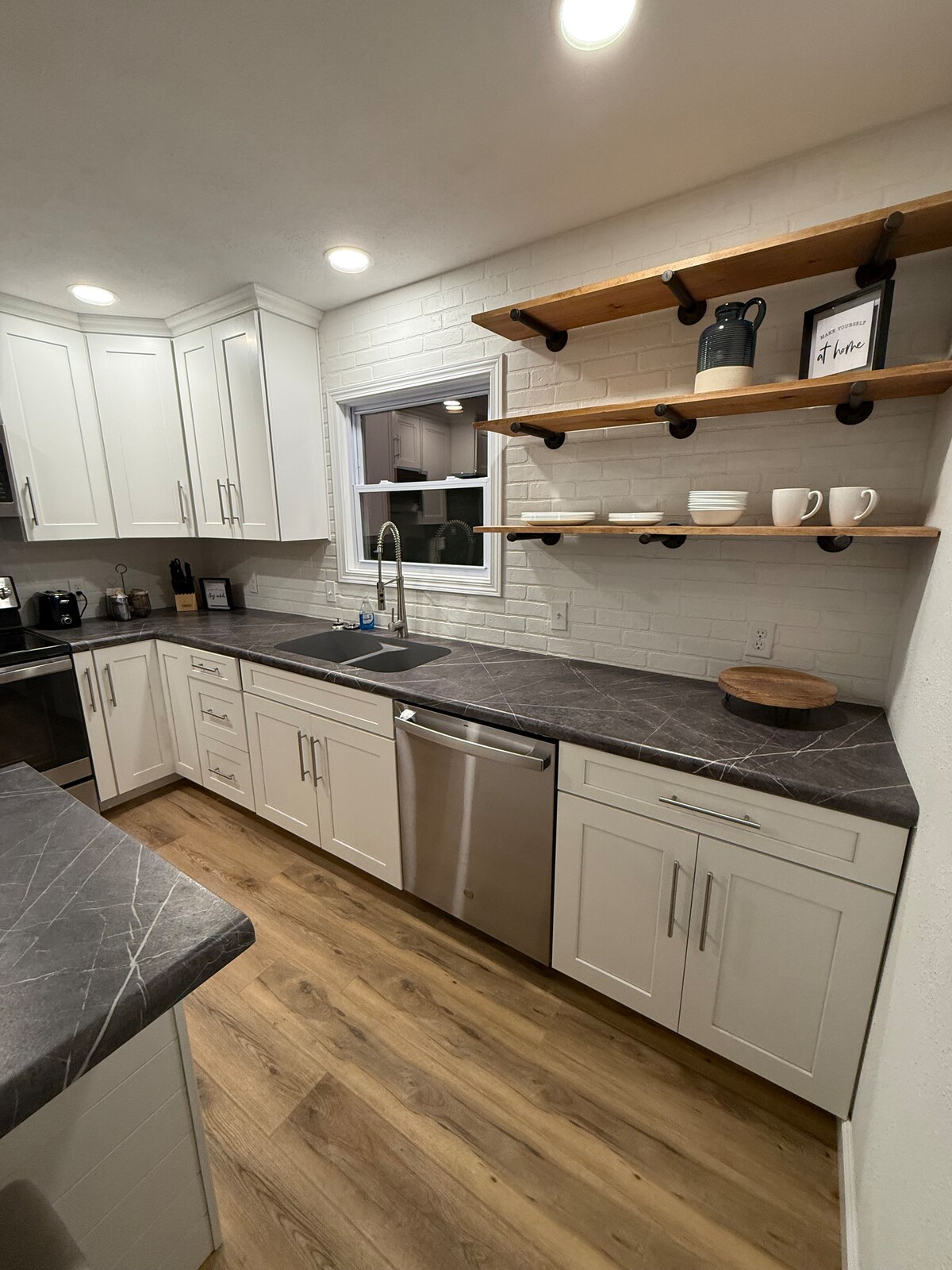 ¡Este alojamiento único tiene mucho espacio para que disfrutes con los tuyos! Con 1875 pies cuadrados, este paraíso de gran tamaño de 2 dormitorios y 2 baños seguro que te impresiona. Con techos de 12', puertas de 8' y una isla de 14', tendrás mucho espacio para entretenerte, pero es muy acogedor y agradable acurrucarse junto a la chimenea y ver el tráfico/la gente pasear por la calle principal. Hay una pantalla de 120 pulgadas para ver películas o el partido, ¡y no te olvides de relajarte en una de las sillas colgantes mientras lees!