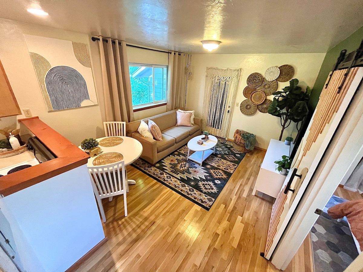 Built as an contemporary art studio this space offers an abundance of natural lighting and an open floor plan. It is walkable•spotless•beautifully appointed with personal touches. Private deck•welcoming vibe•original art & a 5 star host. Enjoy full kitchen•full bath•private parking and comfy bed. Unplug, relax, and de-stress or head out in any direction to experience endless activities & attractions in this vibrant S.E. Eugene neighborhood. *Best suited for adults (infants & teens welcome)