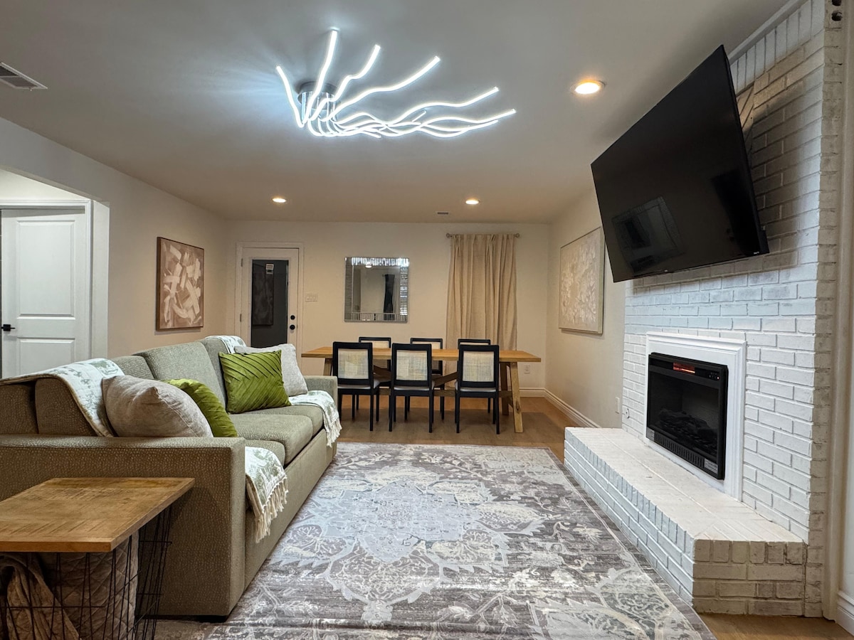 Ubicada a solo 4 millas de la I-40, esta casa entera con ubicación céntrica está disponible para tu familia, invitados y mascotas. Cuenta con una cama tamaño California king en el dormitorio principal y una cama queen en el segundo dormitorio, 4 camas individuales en 2 dormitorios de arriba. También incluye un futón en la oficina, 2 baños recién remodelados, comedor, cocina totalmente equipada con lavadora/secadora, amplia sala de estar con bar, Smart-TV, piano y chimenea. Todos los dormitorios y la oficina tienen Smart TV.