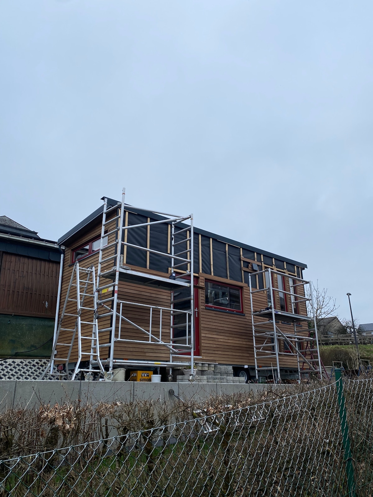¡Minicasa hecha a mano con amor! Vida moderna en un espacio pequeño: calefacción por suelo radiante, ducha caliente, acogedora sala de estar con vistas panorámicas y una cama tipo loft con vistas. La cocina incluye lavavajillas, nevera con congelador, cocina de gas, sofá grande, Wi-Fi y proyector. Exterior: terraza privada, barbacoa y chimenea, gran jardín. A solo 10 minutos del embalse, perfecto para practicar deportes acuáticos y relajarse. Senderos para caminar justo afuera de la puerta, buenas conexiones de autobús y tren. Estacionamiento disponible.