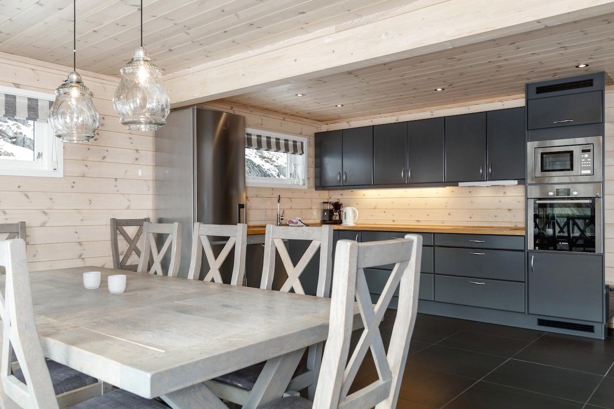 Moderna cabaña de montaña en Lykkja con vistas panorámicas de Skogshorn y Storevatn; no hay cabañas enfrente. Amplia terraza soleada, jacuzzi al aire libre y excelentes opciones para practicar senderismo y esquí justo afuera de la puerta. A solo 20 minutos de la estación de esquí de Hemsedal. Perfecto para familias o grupos grandes. 5 dormitorios, 2 baños + 1 aseo, amplia sala de estar y sala de TV independiente. Jacuzzi al aire libre disponible previo acuerdo por NOK 1000 por estancia (NOK 2000 para estancias de menos de 4 noches). Ropa de cama y toallas adicionales para estadías de menos de 4 noches (NOK 250 por persona).