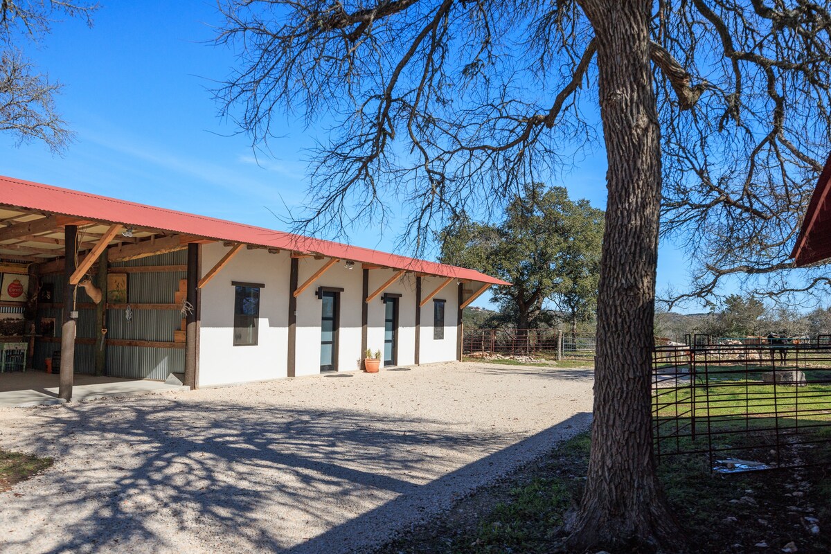 Canyon Road Olive Ranch is a 25-acre property with olive trees and fruit trees. We are centrally located in the Texas Hill Country - 5 minutes from Pedernales Falls State Park and easy driving distance to Austin, San Antonio and Fredericksburg. Our property is easy to get to, yet secluded and quiet with exceptional views of the Hill Country. Cottage 1 has a bedroom with a queen bed and a twin pullout couch. Guests may use the outdoor kitchen / pavilion, large deck, and a fire pit. Dogs welcome.